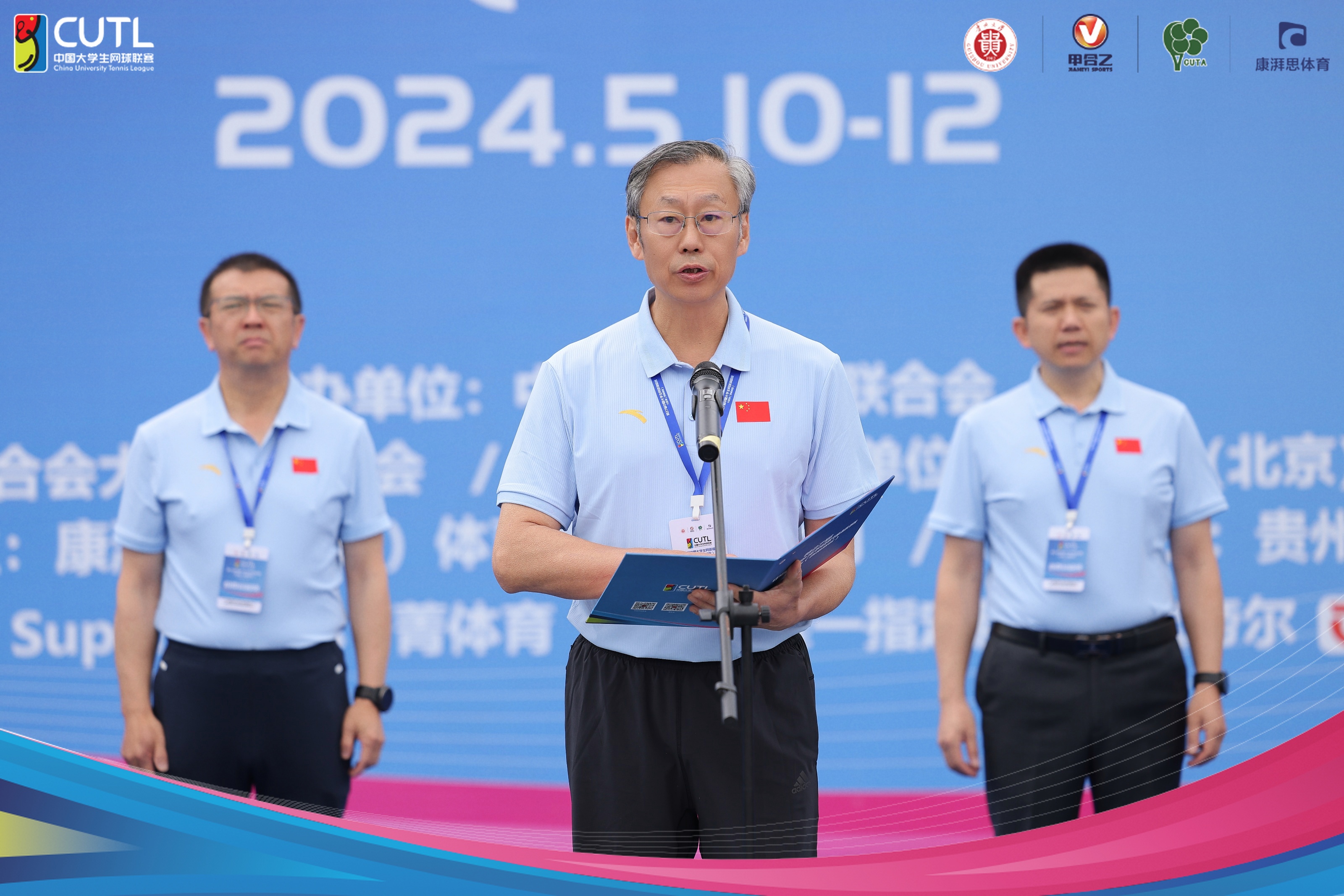 陈祥盛副校长在致欢迎辞时表示,对莅临赛场指导的各位领导来宾以及参赛教练员运动员、工作人员表示热烈的欢迎,对本次比赛给予指导和支持的学体联及其大学网球分会表示衷心感谢。他指出,网球运动作为高校体育文化事业的重要组成部分,对促进学生健康成长有着重要作用。在贵州大学举办本次比赛,将有力促进贵州高校体育文化发展。陈副校长同时寄语各参赛队运动员,服从裁判、尊重对手、奋力拼搏、争取更大光荣!