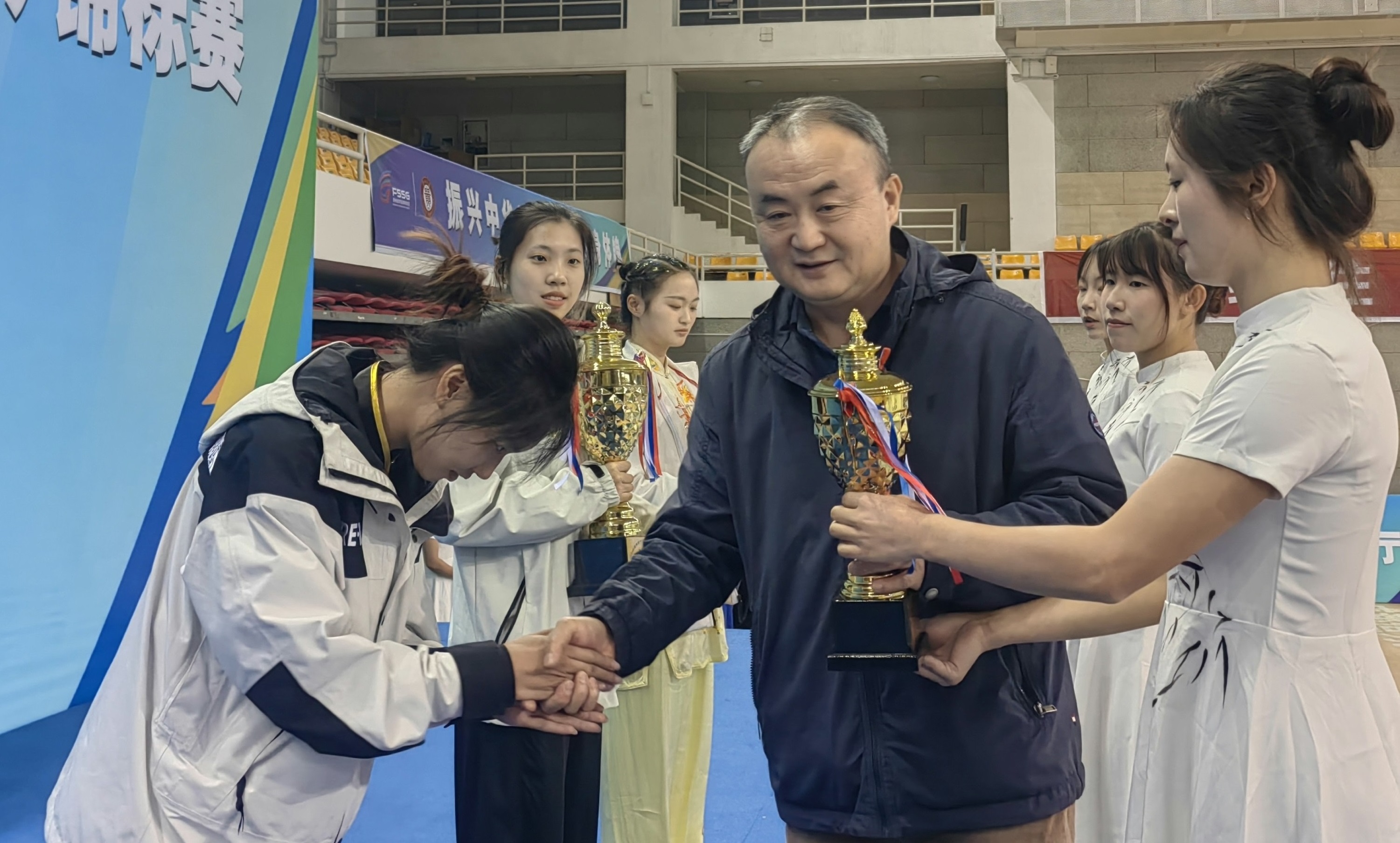 111日下午,2024年贵州省学生武术(套路)锦标赛在贵州大学东校区体育馆圆满闭幕。贵州省教育厅体卫艺处严卫一级调研员、贵州大学体育学院党委书记洪影秋、贵州大学党委正处级组织员陈朝东、比赛总裁判长赵艳霞出席闭幕式,分别为参赛团体颁发锦标赛体育道德风尚奖、武德风尚奖、团体总分奖杯。