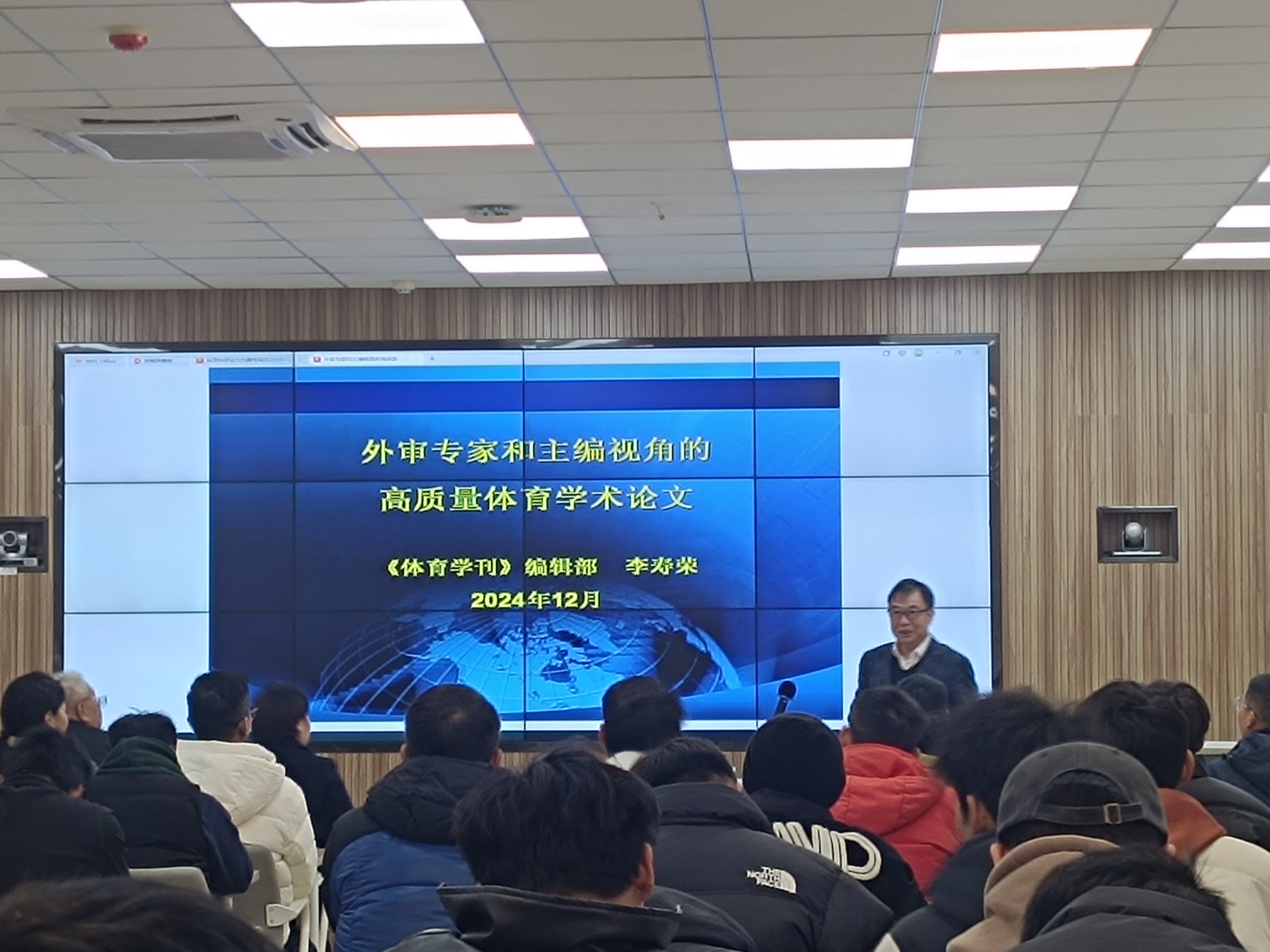 2024年12月15日上午,《北京体育大学学报》孔垂辉编审、《体育学刊》常务副主编李寿荣教授应邀我院进行讲学,在雅正楼519报告厅分别作了题为《体育科研论文的撰写规范》《外审专家和主编视角的高质量体育学术论文》的学术讲座。本次讲座由体育学院院长王华倬教授主持,学院部分教师、硕士研究生到场聆听。