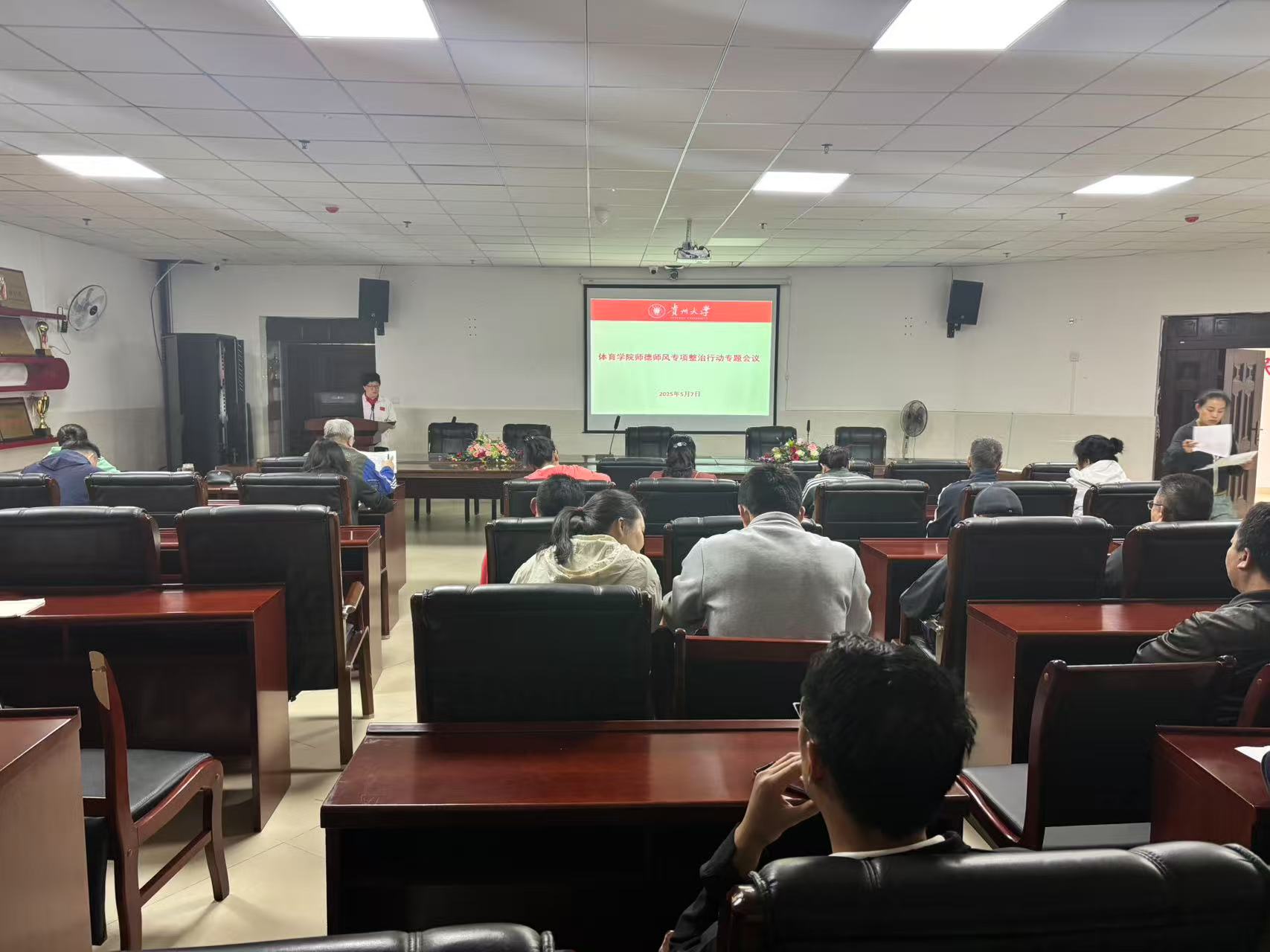 2025年5月7日,体育学院在106会议室召开全院教职工师德师风专题会议此次会议旨在进一步加强学院教职工的政治理论水平,提升师德师风建设。