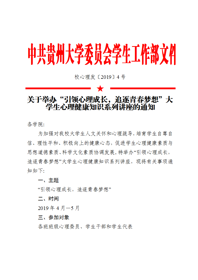 关于举办“引领心理成长,追逐青春梦想”大学生心理健康知识系列讲座的通知