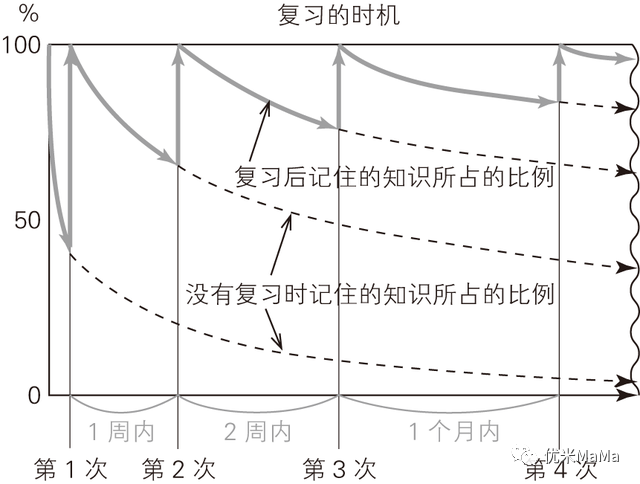艾宾浩斯遗忘曲线告诉我们,大脑遗忘的规律不是线性的,所以我们要有规律地“重复”。