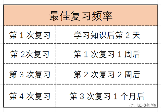 研究人员发现,经过上图4次重复,海马体就会将信息放入长时记忆区。所以,对孩子而言,学会恰当时机地复习,比知识本身还重要。
