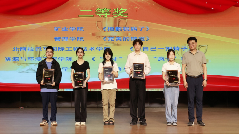 矿业学院《抱歉我病了》、管理学院《完美的错觉》、北阿拉巴马国际工程技术学院《给自己一把椅子》、资源与环境工程学院《“天才”在左,“疯子”在右》、哲学学院《断桥与炊烟》获得二等奖。