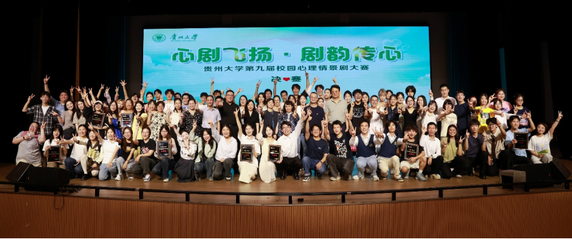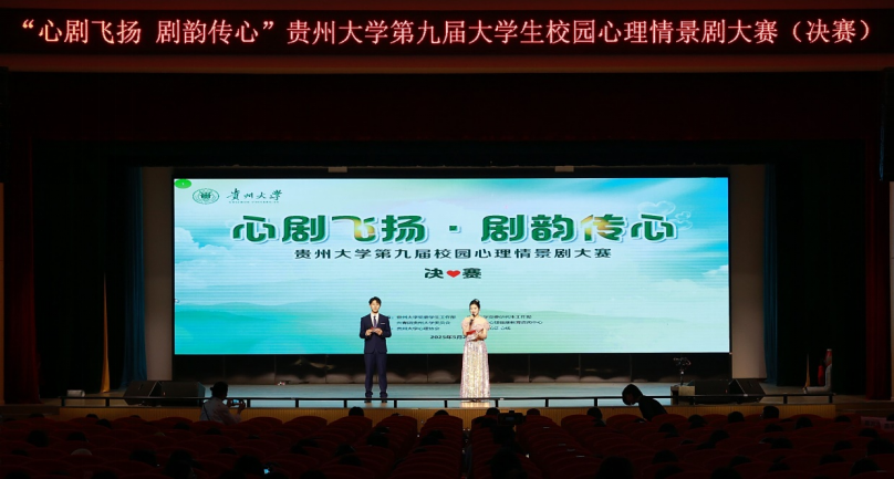 5 月 21 日晚,“心剧飞扬·剧韵传心”贵州大学第九届校园心理情景剧大赛决赛在贵州大学南校区两用礼堂隆重举行。本次大赛吸引了众多师生关注,“贵大心理”公众号对比赛进行了全程直播。