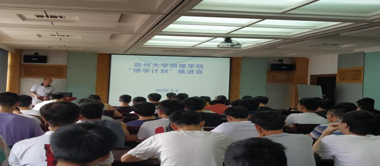 2020年9月2日下午3点,贵州大学物理学院在博学楼329报告厅组织开展了“博学计划”推进会,此次会议由郭军倩老师主持,唐延林副院长、陆定波副书记作了宣讲,2017级全体同学参会。