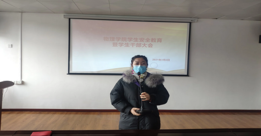 2021年3月2日13时,我院于博学楼427会议室召开物理学院学生安全教育暨学生干部大会。学院党委副书记陆定波同志主持会议,学院辅导员郭军倩老师以及各班班委、学生干部参加会议。