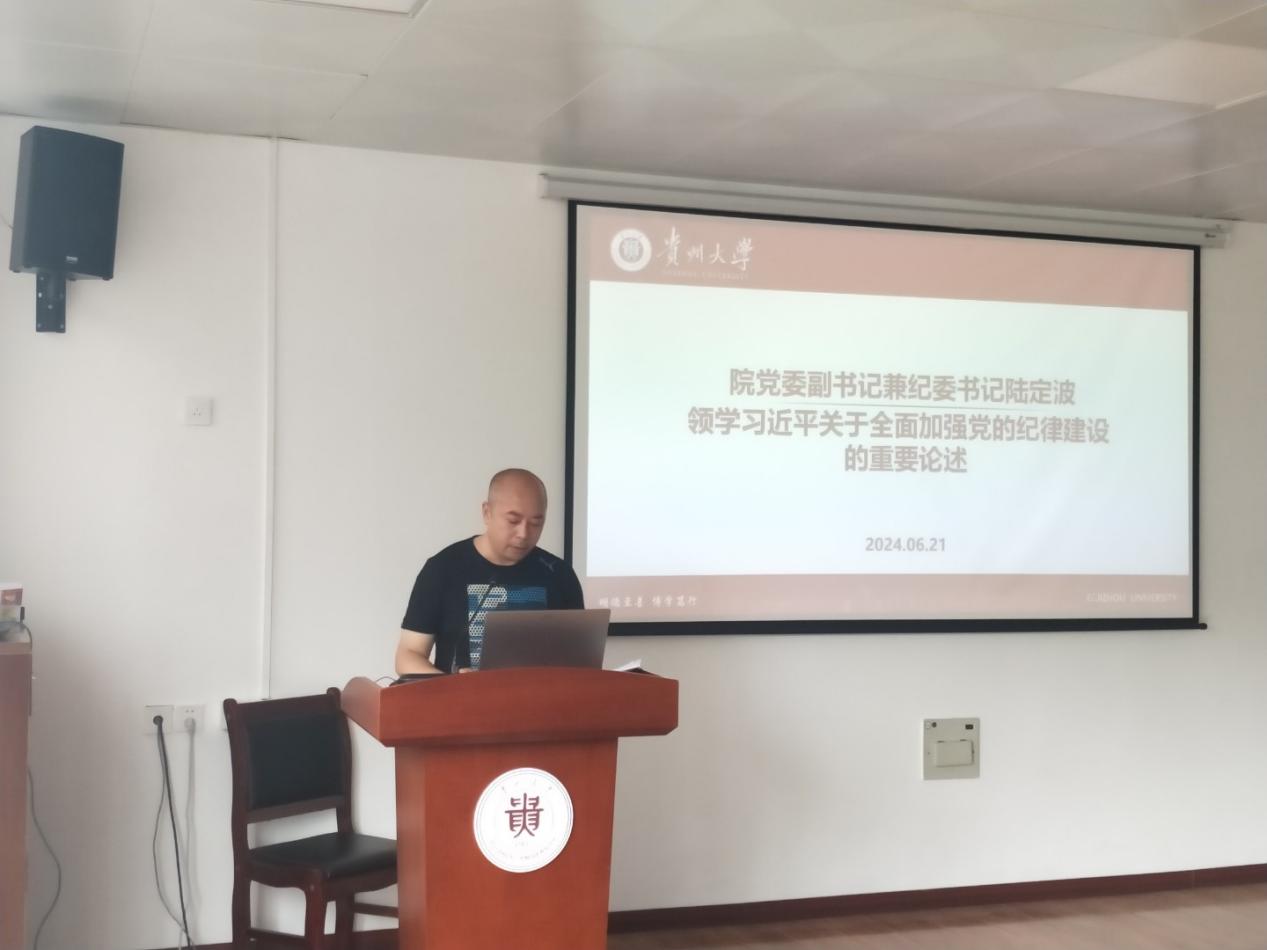 院党委副书记兼纪委书记陆定波首先领学习近平关于全面加强党的纪律建设的重要论述。根据黔党建发【2024】3号文件要求,我们要认真学习领会习近平总书记关于全面加强党的纪律建设的重要论述,扎实开展党纪学习教育,要深刻领会其科学内涵和实践要求,推进纪律教育常态化。