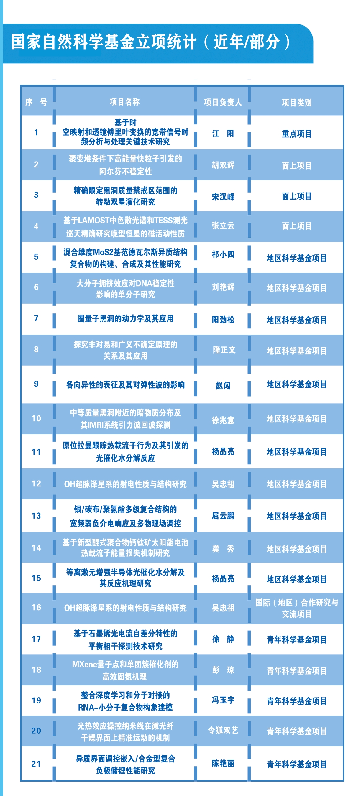 物理学院近几年国家自然科学基金项目清单