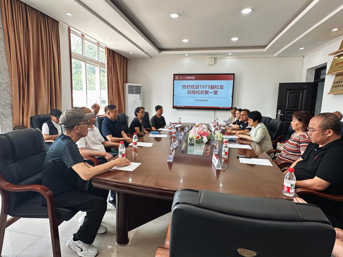 在交流环节,校友代表们深情发言。振华集团集成电路厂原党委书记都进波,思南县民中学原校长,思南县政法委原副书记李永良,遵义长征电器基地原办公室主任程子模深情回顾了在校求学的难忘时光,“当年物理系老师严谨治学的态度影响了我们的一生。数十年来,我们始终铭记母校教诲,以勤恳的工作态度和扎实的专业素养,在各自岗位上践行着贵大人的责任与担当”。贵州大学原工会副主席尹玉华在座谈中深情表示:“衷心感谢学院的热情接待,让我们这些老校友真切感受到回家的温暖。特别要感谢金方林校友为此次返校活动付出的辛勤努力,正是他的精心组织和周到安排,才让我们这场跨越半个世纪的重聚如此圆满。”