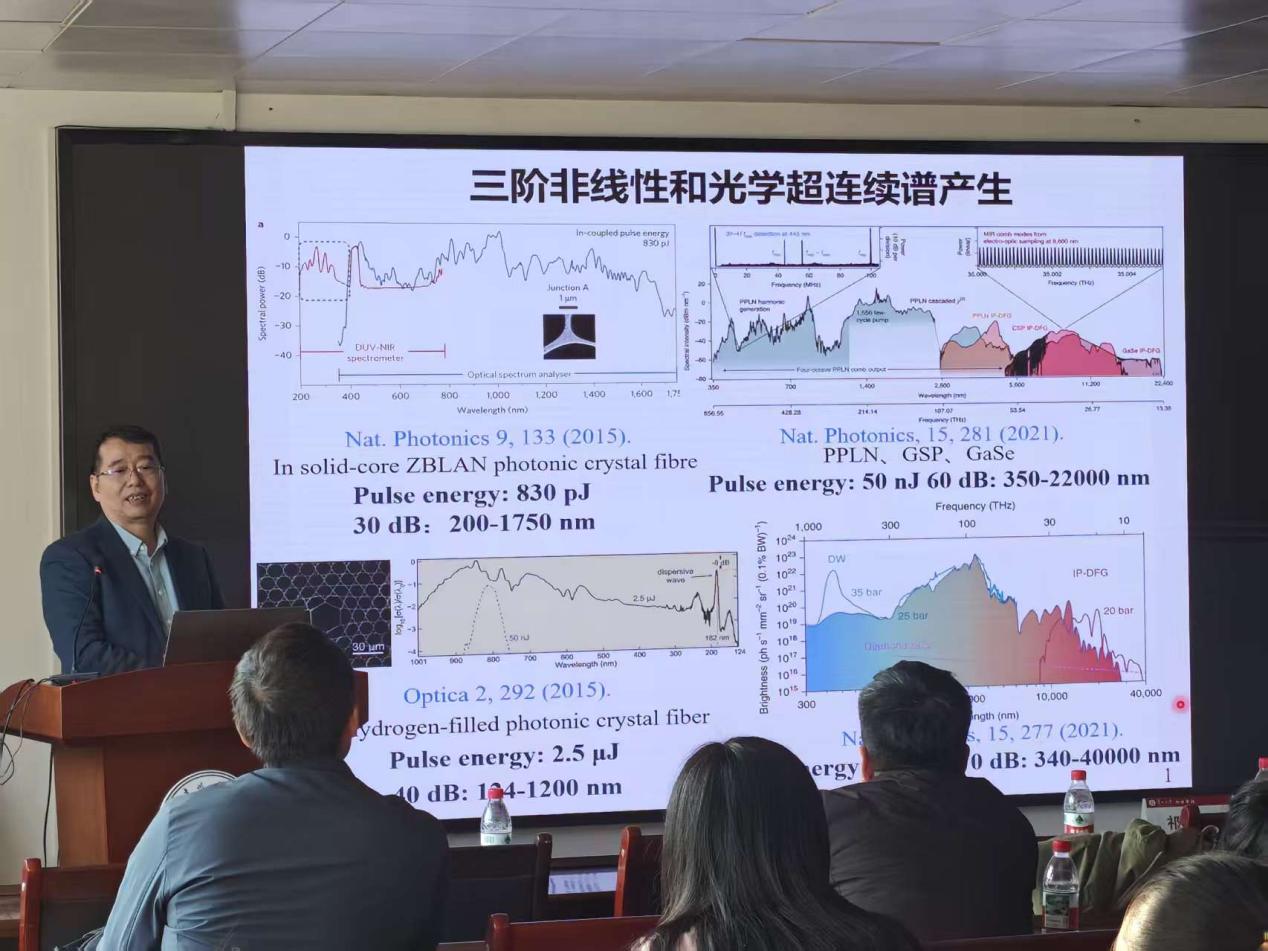 11月24日下午,华南理工大学物理与光电学院副院长李志远教授应邀在我院博学楼427会议室,为师生作了题为《通向全谱段白光激光和单分子拉曼检测的道路》的学术报告。李教授系统介绍了其在微纳光子学领域取得的一系列创新研究成果,重点涵盖了新型电磁理论模型与计算方法的构建、光子晶体与等离激元结构中新效应的理论揭示、以及硅基光子器件的研发等方面。相关成果成功推动白光激光、三维微纳加工等前沿技术的发展,为高性能光子器件与系统提供了关键的理论支撑与技术路径。