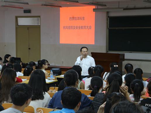 新学期开始,为进一步加大“纯风行动推进计划”工作力度以及加强学生安全教育,切实提高班风、院风及学风建设和管理水平, 9月11日下午,药学院在南区致知楼202教室召开了全院本科生纯风提质暨安全教育大会。学院党委书记李开学出席大会并讲话,大会由院学生科负责人戴隆满主持。