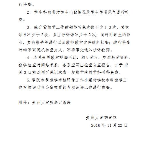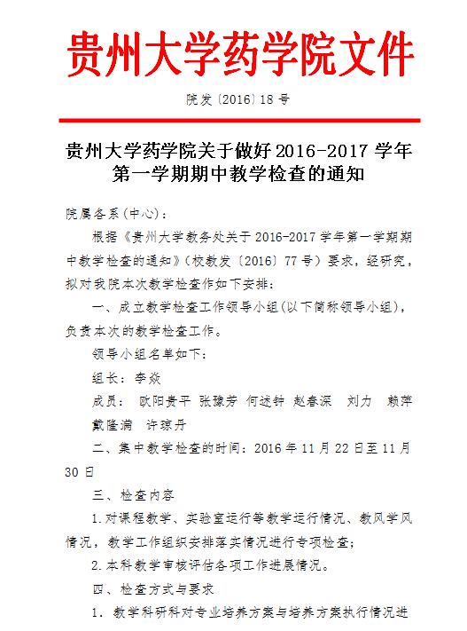 药学院关于做好2016-2017学年第一学期期中教学检查的通知