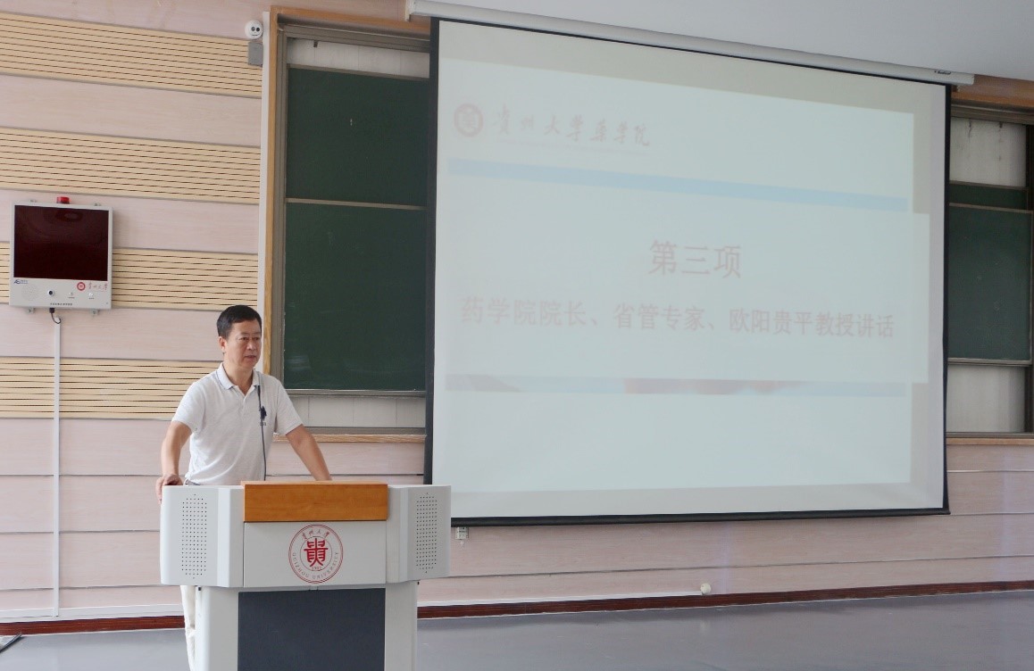 9月4日上午10点,药学院于西楼305举行2019级学生入院教育大会。院党委书记凃华君、院长欧阳贵平、副院长李焱出席大会,各系主任、各科室负责人、2019级班主任以及2019级全体学生160余人参加,大会由院党委副书记张豫芳主持。