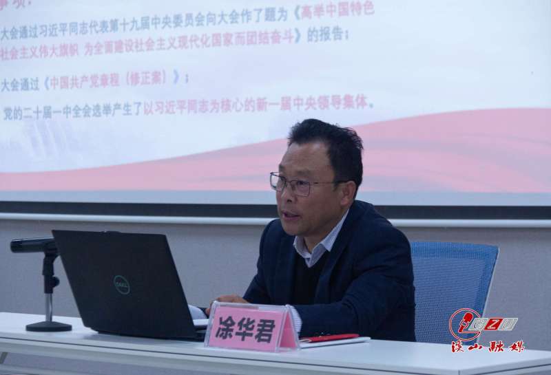 凃华君以“高举中国特色社会主义伟大旗帜,为全面建设社会主义现代化国家而团结奋斗”为题,从“深刻领会和掌握党的二十大的重大意义,深刻领会过去五年的工作和新时代十年的伟大变革的重要意义,深刻领会和把握习近平新时代中国特色社会主义思想的世界观和方法论,深刻领会和把握以中国式现代化全面推进中华民族伟大复兴的使命任务,深刻领会和把握新时代新征程的使命任务,奋力谱写多彩贵州现代化建设新篇章,深刻领会和把握以伟大自我革命引领伟大社会革命的重要要求,深刻领会和把握团结奋斗的时代要求”等七个方面,作了系统宣讲和深入解读。