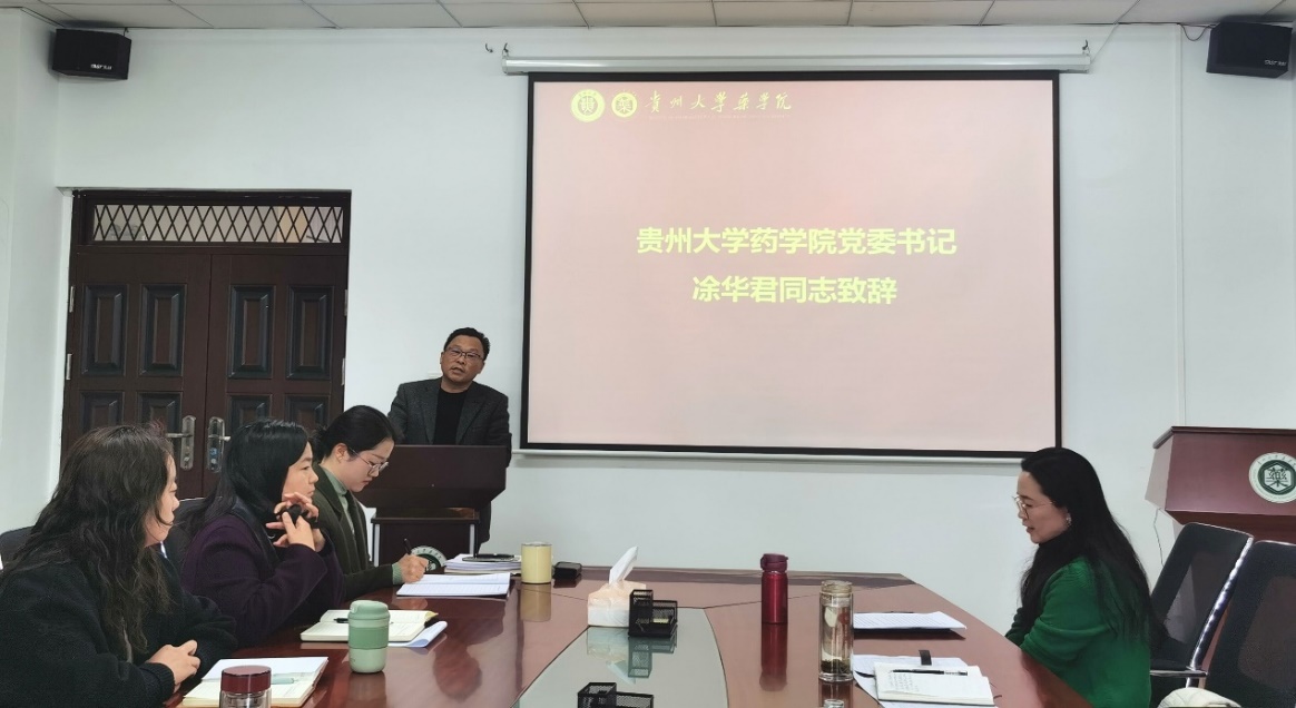 (通讯|李成朋)2024年3月8日,药学院在崇义楼621召开第二届第五次教职工暨工会会员大会。院党委书记凃华君、院长潘卫东、校党委正处级组织员李天强、副院长何述钟及全体教工参加本次大会。会议由学院副院长、副书记、分工会主席李焱主持。