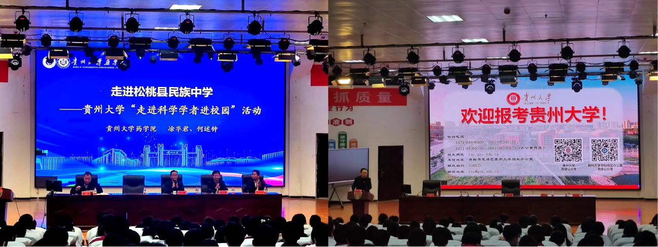 (通讯|李成朋)根据《贵州大学优质生源提升行动计划》要求,为进一步加强贵州大学与省内高水平中学的合作交流,药学院党委书记凃华君和副院长何述钟一行到松桃县民族中学和余庆中学开展走近科学——学者进校园活动。