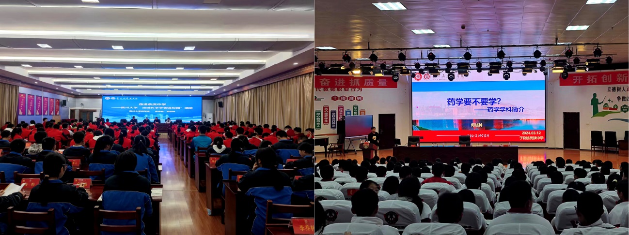 何述钟则在交流会上介绍了贵州大学药学院的基本情况,深入浅出地从药学的基本概念讲起,以药物研发的过程为主线,引导同学们理解药学研究的内涵与方法。同时,他还以药学专业为例,为同学们提供了关于如何选择专业及高考志愿填报的宝贵建议。此外,他还给出了高中阶段学习的具体建议,并希望同学们在这个关键时期努力学习,为未来的学习和事业打下坚实的基础。