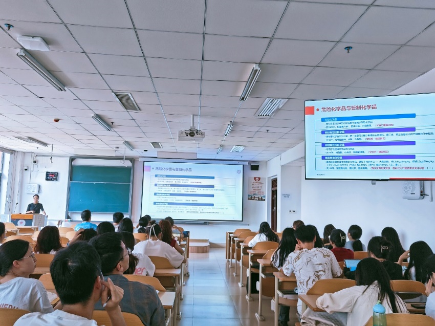 杨岚老师基于在清华大学参加《高校实验室管理人员专业能力提升项目》所学实验室安全管理理念,深刻阐述了实验室安全的核心要义。通过剖析近年来高校实验安全事故案例,警醒同学们安全科研的红线不可逾越,她从风险管控的RAMP原则强调了实验室风险管控的重要性,并告知同学们如何进行风险源的识别,细致讲解了事故应急与救援的关键步骤,倡导冷静应对、生命至上的原则。此外,杨老师特别介绍了《药学院实验人员安全准入及积分管理制度》,该制度通过积分扣减的管理方式对实验室和实验人员进行双重管理,当积分为零时对实验室关停且所有实验人员需重新获得准入,主要评估和监督实验人员日常规范实验操作。杨老师的讲解全面而深入,让研究生新生对实验室安全有了更加全面的认识,进一步提高了学生的安全防护能力。