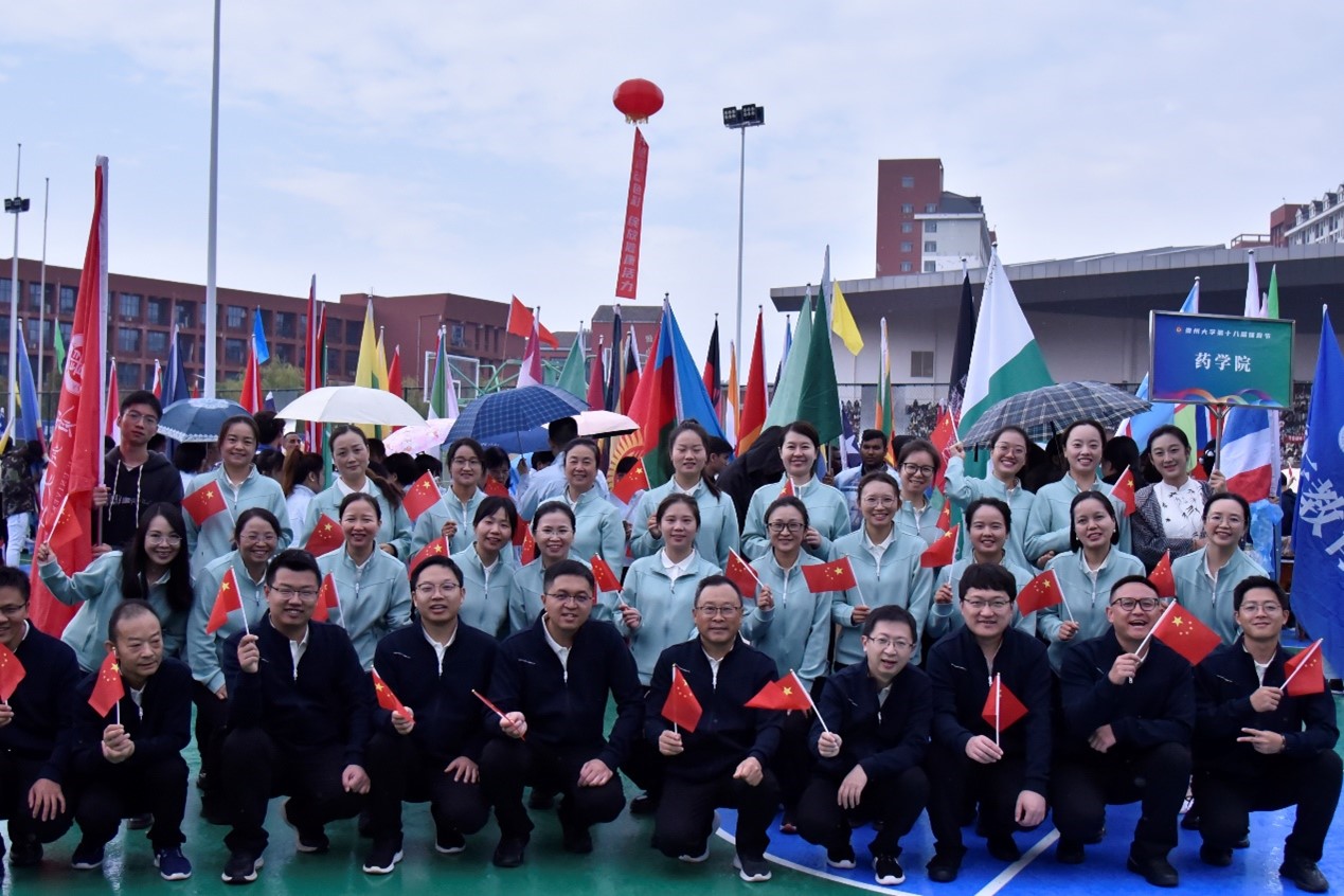 在开幕式上,药学院的教职工们身着统一服装,手持小国旗,以青蓝相间的色彩亮相,他们步伐整齐划一,精神昂扬,展现了药学院教职工的精神风貌。