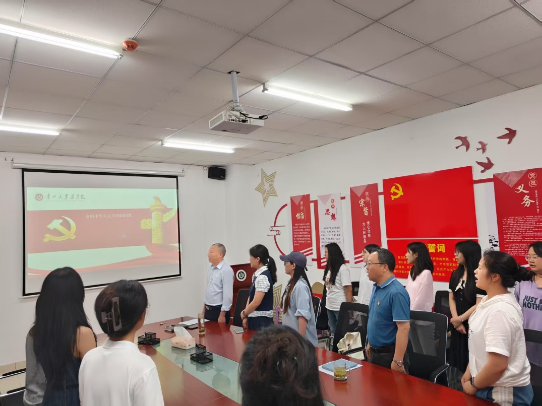 首先重温入党誓词,由本科毕业生党员冯瀑锦同志领誓入党誓词。所有参会党员昂首挺胸,高举右拳,面向党旗重温入党誓词,叩问入党初心。