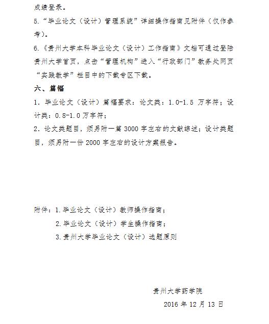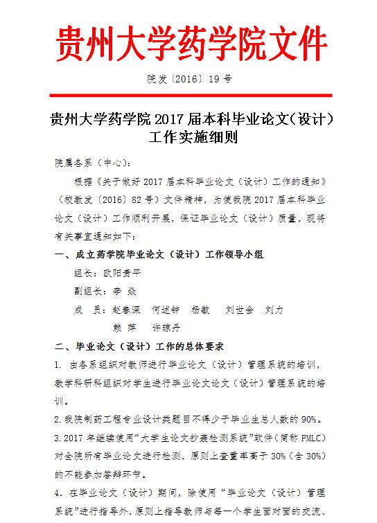 贵州大学药学院2017届本科毕业论文(设计)工作实施细则