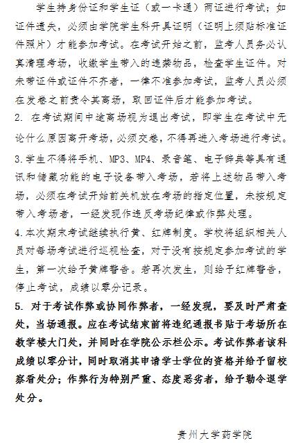 贵州大学药学院关于做好2016-2017-1学期期末考试有关工作的通知