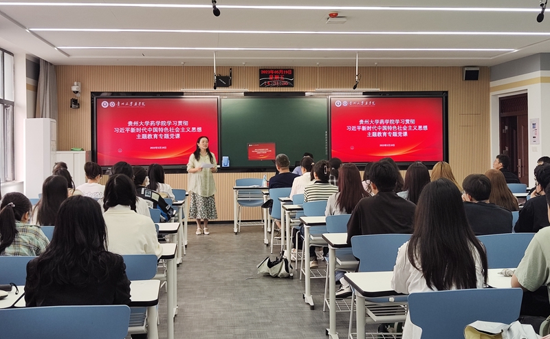 在党课上,凃华君以“以习近平新时代中国特色社会主义思想为指引努力实现药学院高质量人才发展”为题,从“习近平新时代中国特色社会主义思想是当代中国马克思主义”“习近平新时代中国特色社会主义思想创立的时代背景” “习近平新时代中国特色社会主义思想是系统科学的理论体系” “习近平新时代中国特色社会主义思想是经过实践检验、富有实践伟力的强大武器” “习近平新时代中国特色社会主义思想是坚持和运用辩证唯物主义和历史唯物主义的光辉典范”等方面,对习近平新时代中国特色社会主义思想的创立、时代背景、主要内容、精髓要义、重大意义等进行了深入阐释和系统讲解。
