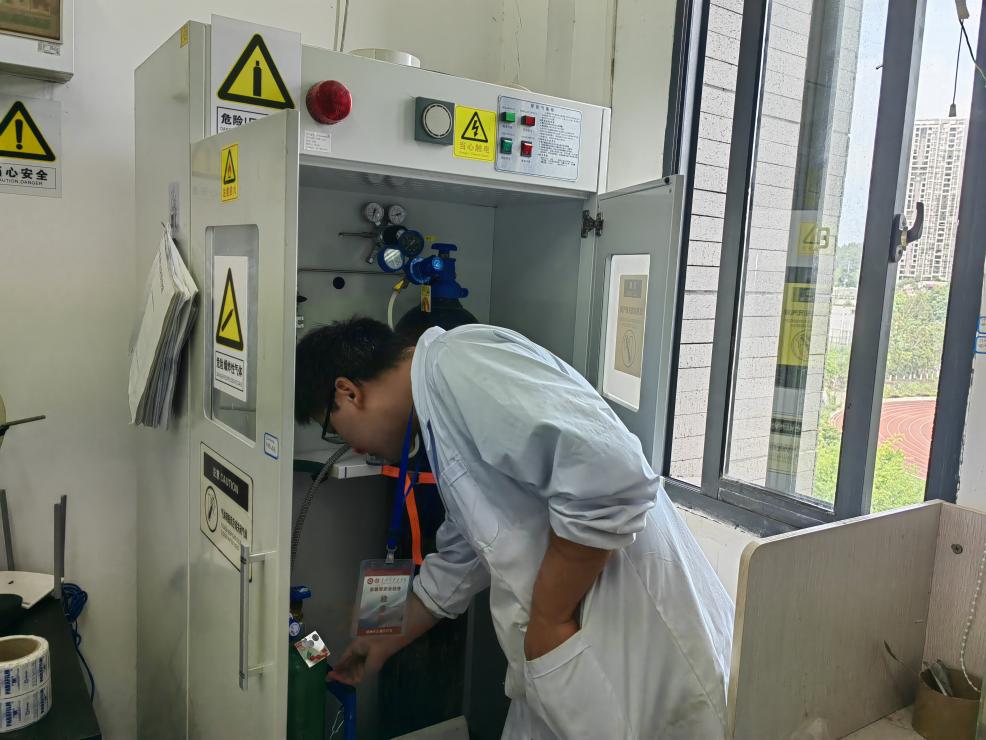 (图文|周玥)为贯彻落实《教育部办公厅关于组织开展2023年度高等学校实验室安全检查工作的通知》《省教育厅办公室关于组织开展2023年高校实验室安全检查工作的通知》《贵州大学药学院2023年“实验室安全年”活动的通知》等文件精神的有关工作要求,加强全院实验室安全宣传教育工作,进一步巩固学院安全、和谐、稳定的实验环境,5月26日,由实验教学中心主任刘冰带领学院实验室安全检查小组对学院7间使用气瓶的科研实验室进行了全面深入的专项检查。