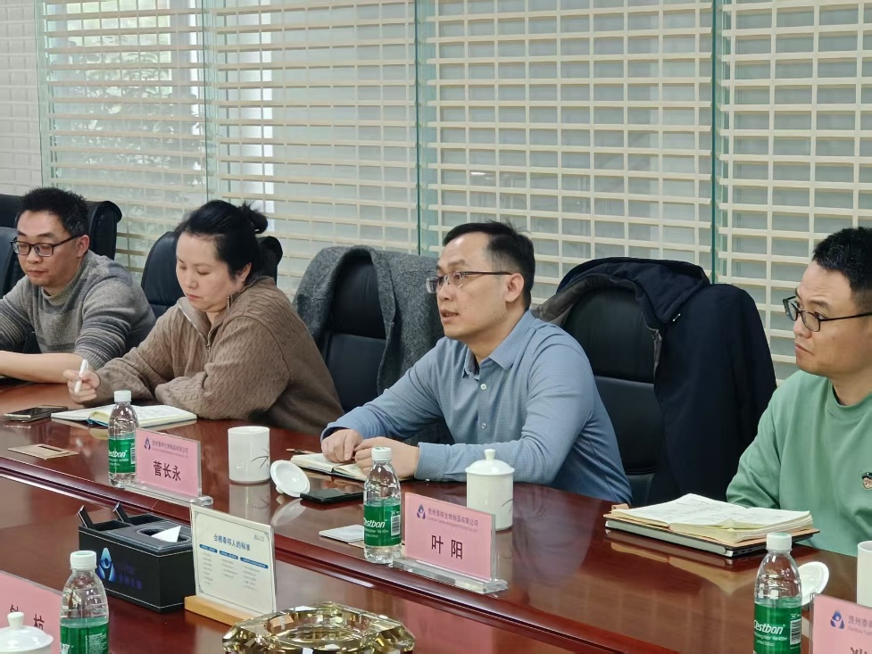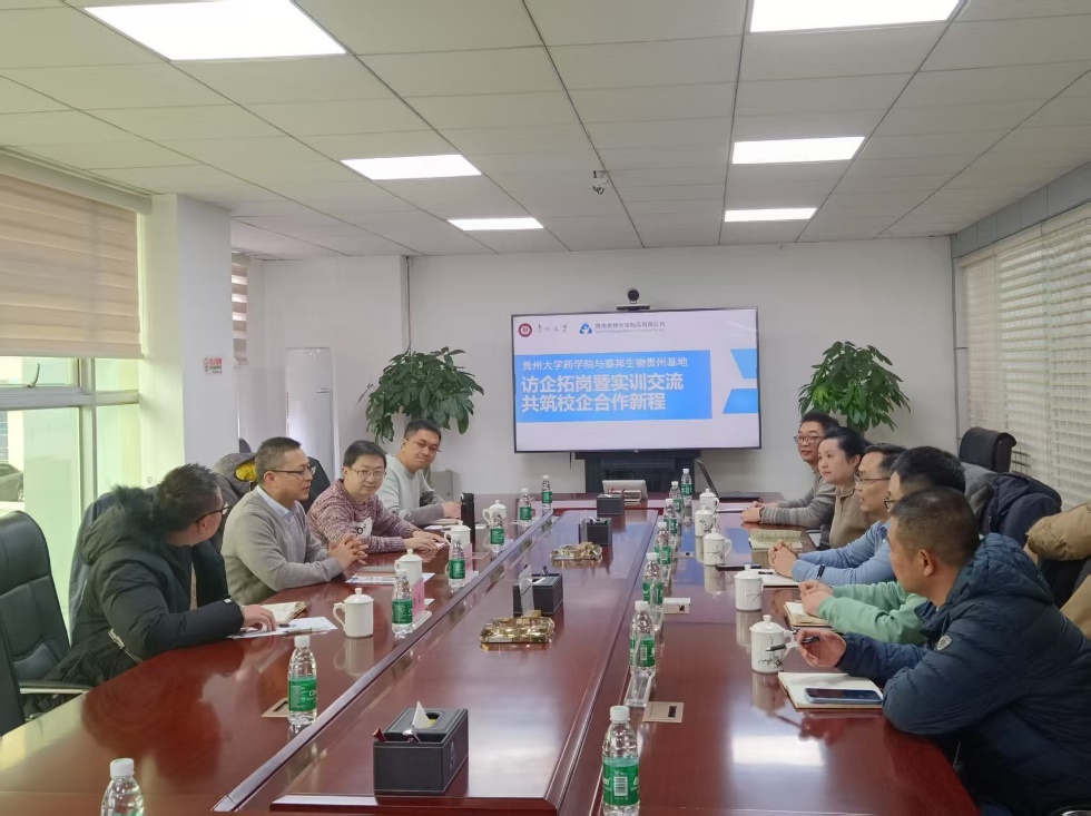 (通讯|周志旭)2025315日,为了加强访企拓岗及校企产学研深度合作,药学院院长潘卫东率队一行四人赴贵州泰邦生物制品有限公司开展合作交流。泰邦生物总经理菅长永、人事总监郑晶晶、生产总监叶阳等陪同座谈。菅长永总经理对贵州大学药学院领导专家一行的到来表示热烈欢迎,并就公司概况、产品研发情况、主营业务布局、新厂区建设等做了介绍。