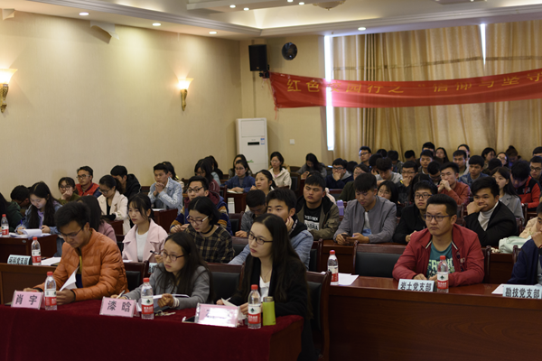 贵大资环网讯(新闻中心支升福报道|摄影卢利潇)为了让我院全体学生党员感受长征精神的内涵和意义,深刻理解红军长征在中国革命史上的重要地位,弘扬长征精神,坚定跟党走的理想信念。3月25日上午9时,由资环学院本科生党总支主办的红色校园行之“信仰与坚守·重温长征行”主题活动在资环楼436报告厅开展,活动由罗艾晖同学主持。