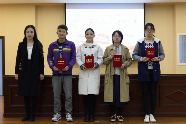 最后,由漆晗老师和党总支部副书记苟潇同学分别为获得PPT讲解前三名的党支部(第一名:水文与水工党支部、第二名:地信党支部、第三名:岩土党支部、环科党支部)和本次活动的最佳讲解员郎涛同学颁发奖状和证书。