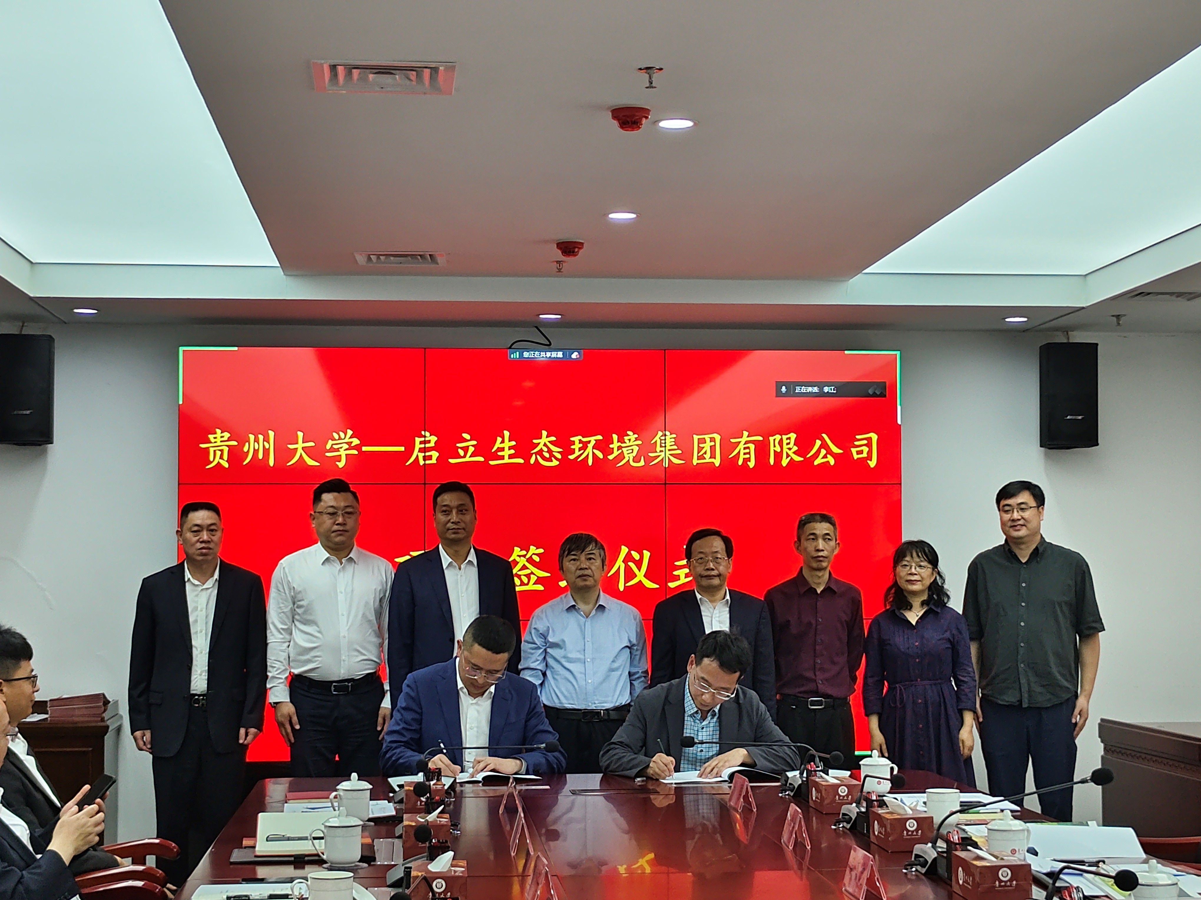 在与会嘉宾的共同见证下,我院教师李江教授与启立生态环境集团曹雪飞副总裁共同签署了《贵州大学-启立生态环境集团有限公司项目合作协议》。