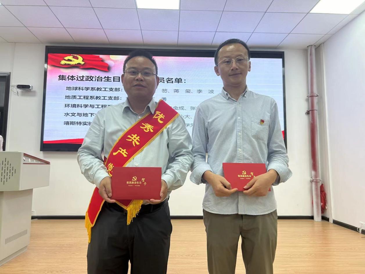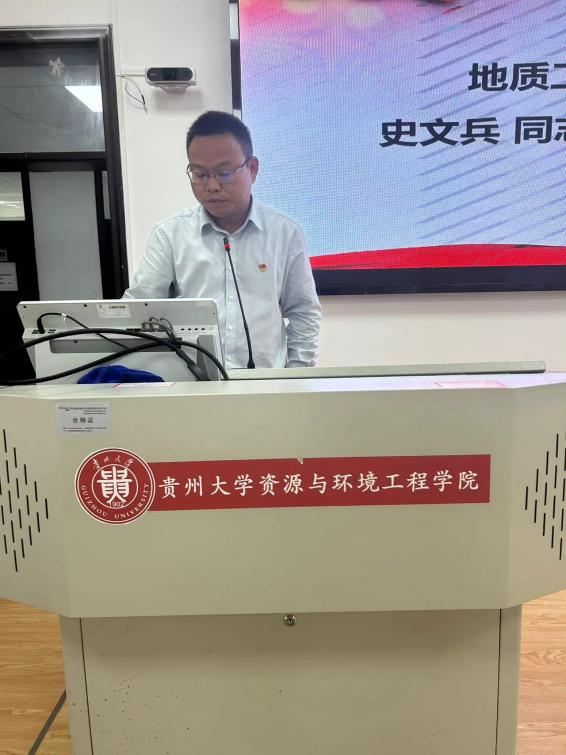 地质工程系教工支部书记王勇同志为史文兵同志赠送“政治生日贺卡”