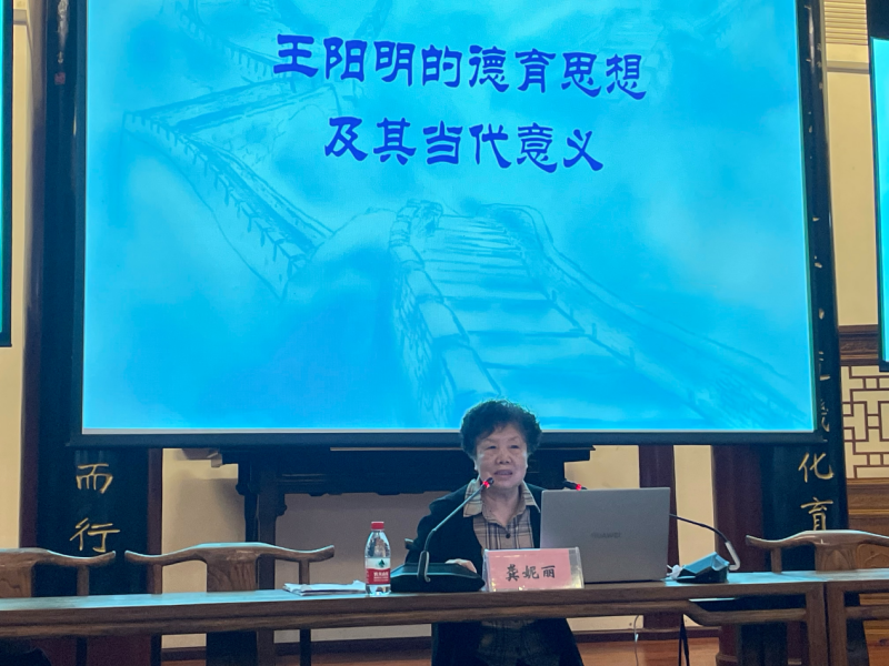讲座,龚妮丽老师结合自身经历以及一些生动形象的小故事,对王阳明“致良知”的德育宗旨、协调统一的德育理念及方法途径、王阳明德育思想的当代意义三方面进行了全面的阐释,深入浅出地向听众呈现了王阳明的德育思想,探讨德育思想对当下高校教育的意义,深受大家欢迎。