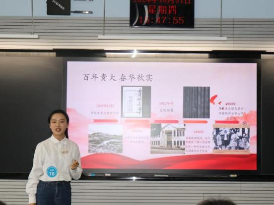 本次比赛采取学院推荐和学生自荐的报名方式,共有来自32个学院的70名本科生和研究生进入初赛。比赛中,每名选手有5分钟的时间进行自我和学校介绍,选手们通过PPT、短视频等形式,围绕贵大的历史沿革、师资力量、学科建设、校园风光、校园生活以及招生情况进行介绍。深情并茂的讲述、生动有趣的展示,诠释着参赛选手对学校的热爱、对招生宣传工作的参与热情。