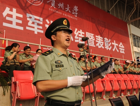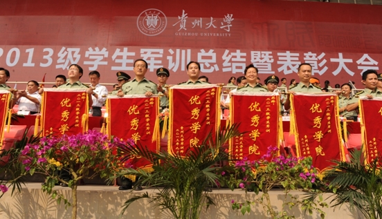 9月21日上午,我校2013级军训总结暨表彰大会在花溪北校区体育场隆重举行。