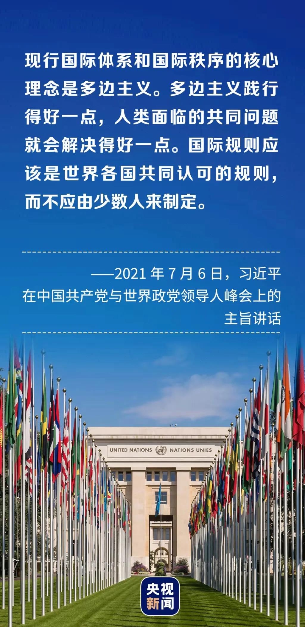“国际上的事应当由各国共同商量着办,推行国际关系民主化、践行真正的多边主义才是人心所向、大势所趋。”