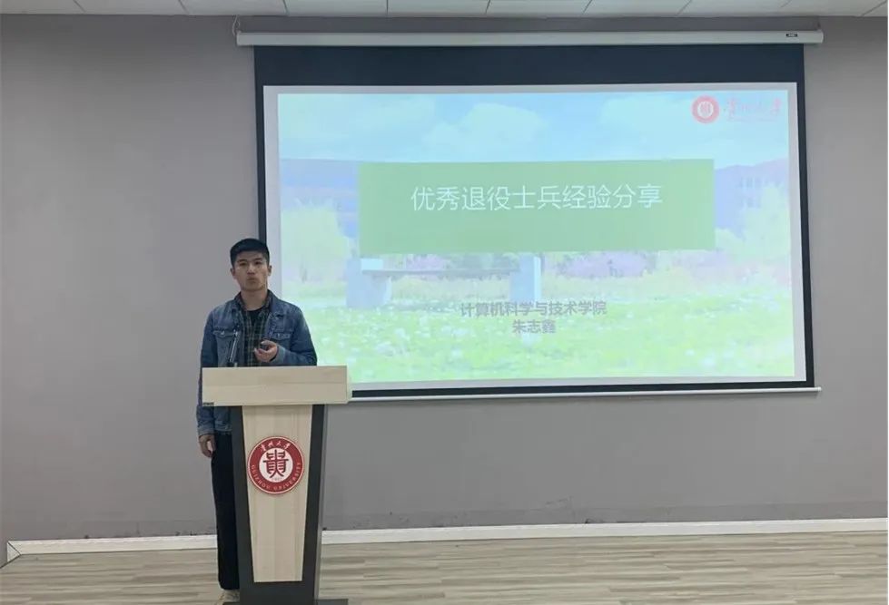 退役优秀大学生士兵代表计算机科学与技术学院朱志鑫就如何做好征兵宣传进行了经验分享。他说,我们可以介绍一下自己为什么想去部队,分享一个部队生活的片段以及部队的服役经历带给自己的成长和收获。他建议大家用自己的亲身经历去现身说法,增强宣传的感染力和效果。