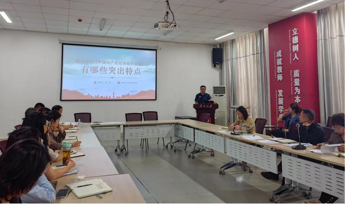 5月22日上午,学生工作部(处)、武装部党支部召开全体党员大会,党支部书记龙汶围绕学习贯彻《中国共产党纪律处分条例》(以下简称《条例》)向党支部全体党员讲授专题纪律党课,推动党纪学习教育入脑入心。