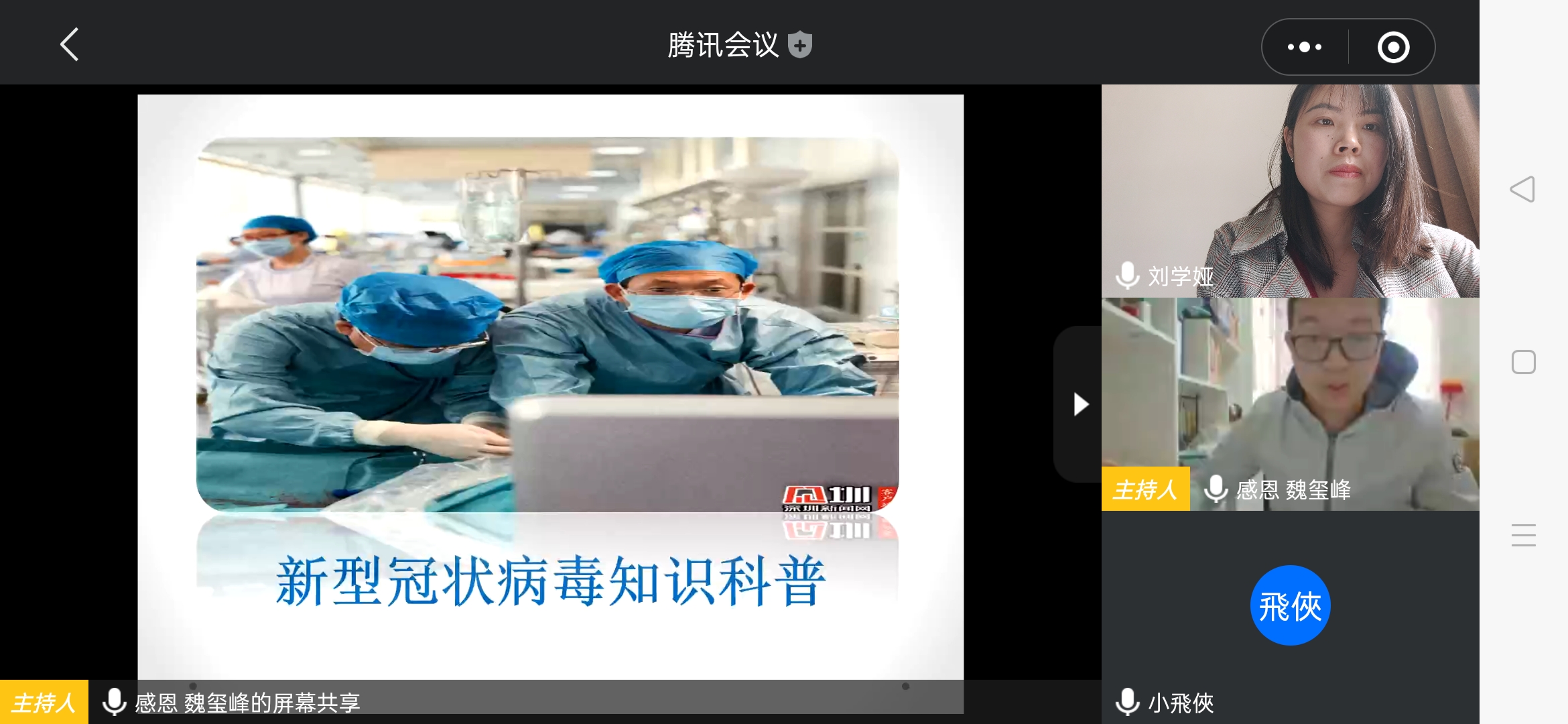 随后,魏玺峰同学分享抗疫知识。他向大家详细的介绍了什么是新冠肺炎、肺炎感染者症状以及相关的疫情防控措施,让同学们对新冠肺炎和防控工作都有了进一步的认识,为同学们积极配合疫情防控打下了很好的基础。