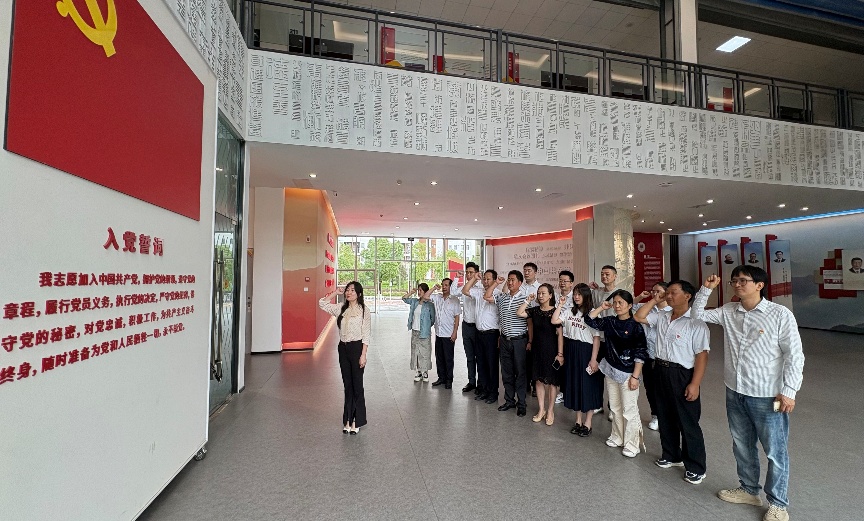 随后,全体党员面向鲜红的党旗,庄严举起右拳,重温入党誓词。铿锵有力的誓言回荡在党建思政文化中心,表达了全体党员对党的无限忠诚和对马克思主义的坚定信仰,进一步强化初心使命,增强责任担当。