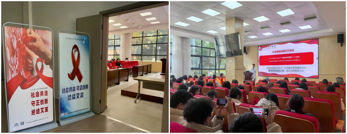 11月26日校医院公共卫生科姚云骞医生在南校区面向阳明学院大一新生进行艾滋病防治专题宣讲。宣讲结合生动案例与互动环节,详细科普了艾滋病传播途径、预防措施与检测方式,引导学生树立正确的性观念与健康责任意识,积极营造理解、关爱的校园氛围。12月1日,西校区雅文楼广场,主持人开篇点明世界艾滋病日的意义,强调青年学生群体在防艾工作中的重要作用。学生代表发出防艾倡议,号召:知艾于心,筑牢健康防线;防艾于行,严守预防关卡;关爱于情,驱散艾滋阴霾。倡议言辞恳切、掷地有声,深刻传递出青年一代的责任担当,引发全场师生强烈共鸣。防艾签名墙前师生们踊跃签名,这是对防艾责任的庄严承诺,也将“携手抗艾、共护青春”的温暖瞬间永久定格,成为校园防艾宣传中一道亮眼的风景线。