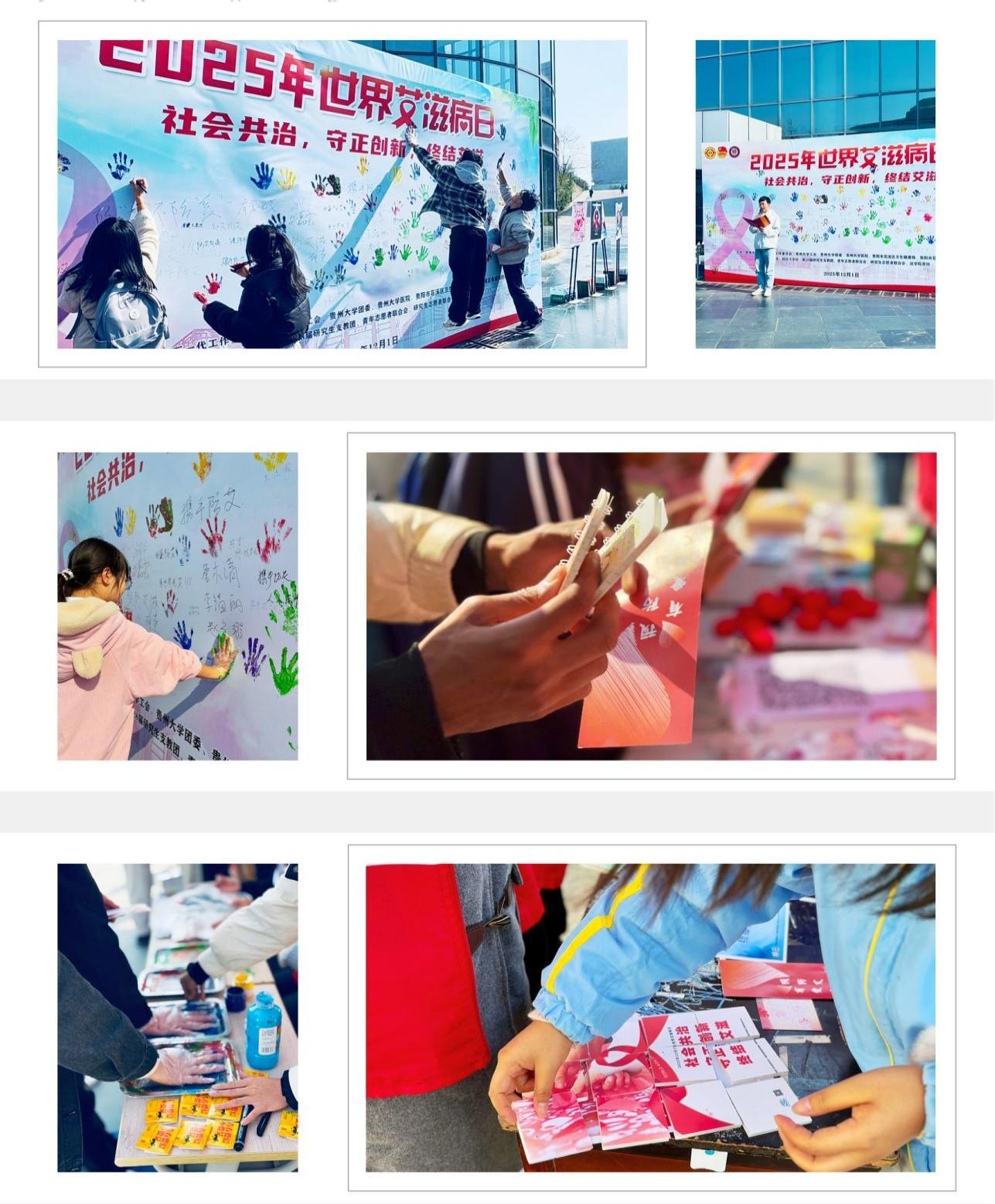 为深入贯彻“社会共治,守正创新,终结艾滋”的防艾主题,我校校工会、校团委、校医院、校青志联等多部门联合贵阳市花溪区卫生健康局等部分举办防艾宣传活动。活动精准聚焦青年学生健康成长需求,通过倡议发出、互动体验等多元形式普及防艾知识,着力营造理解尊重、关爱包容的校园氛围,吸引师生积极参与,共同筑牢青春健康防线。
