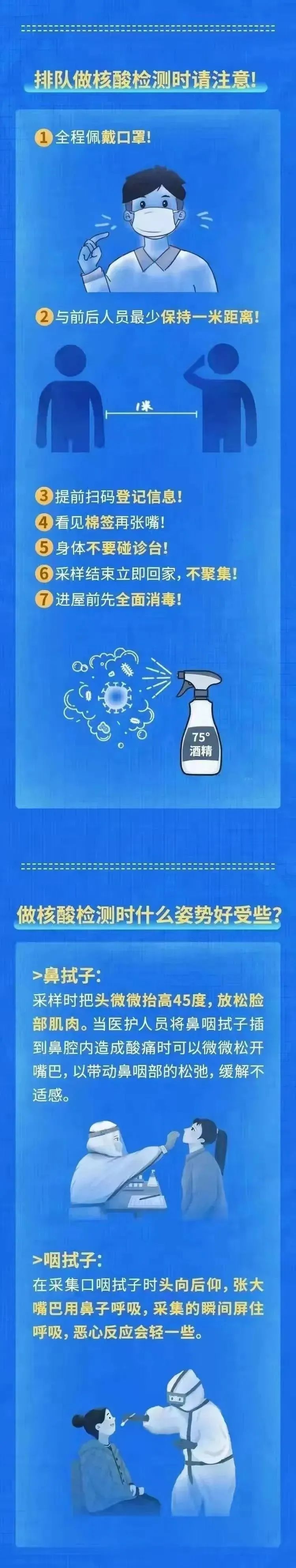 新冠病毒核酸检测既是新冠患者确诊的金标准,也是发现无症状感染者和潜在传染源的可靠方法。当前疫情防控形势严峻复杂,有本土疫情重点地区旅居史等重点人群,要及时、多次进行核酸检测,“早发现”可能的传染源,防止疫情隐匿传播和进一步扩散。在此,提醒您:做核酸检测时,你需要注意这些!