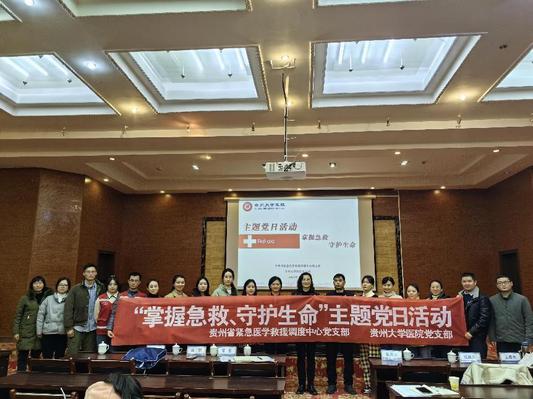 为深入学习贯彻党的二十大精神,全面落实“以学增智、以学促干”的重要要求;为提高应对重大突发公共卫生事件的能力和水平,根据国家卫生健康委等九部委《关于印发进一步完善院前医疗急救服务指导意见的通知》(国卫医发〔2020〕19号)精神,结合《贵州省全民自救互救素养提升计划(2020-2030)》和《贵阳市医疗急救条例》精神,不断提升我省医务人员急救能力和业务水平;积极推进第二批全国学校急救教育试点工作,提高校医院医务人员应对突发公共卫生事件的应急处置能力,履行党员使命担当,确保人民群众生命安全,2024年1月9-10日,校医院党支部联合贵州省紧急医学救援调度中心党支部,在东校区双馨园4楼多功能厅开展“学习贯彻党的二十大精神——掌握急救、守护生命”主题党日活动。校医院党支部书记雷蕾同志、贵州省紧急医学救援调度中心陈莉、赖景贵、崔胜男等同志以及校医院党支部全体党员、部分医护工作者四十余人参加了本次培训。