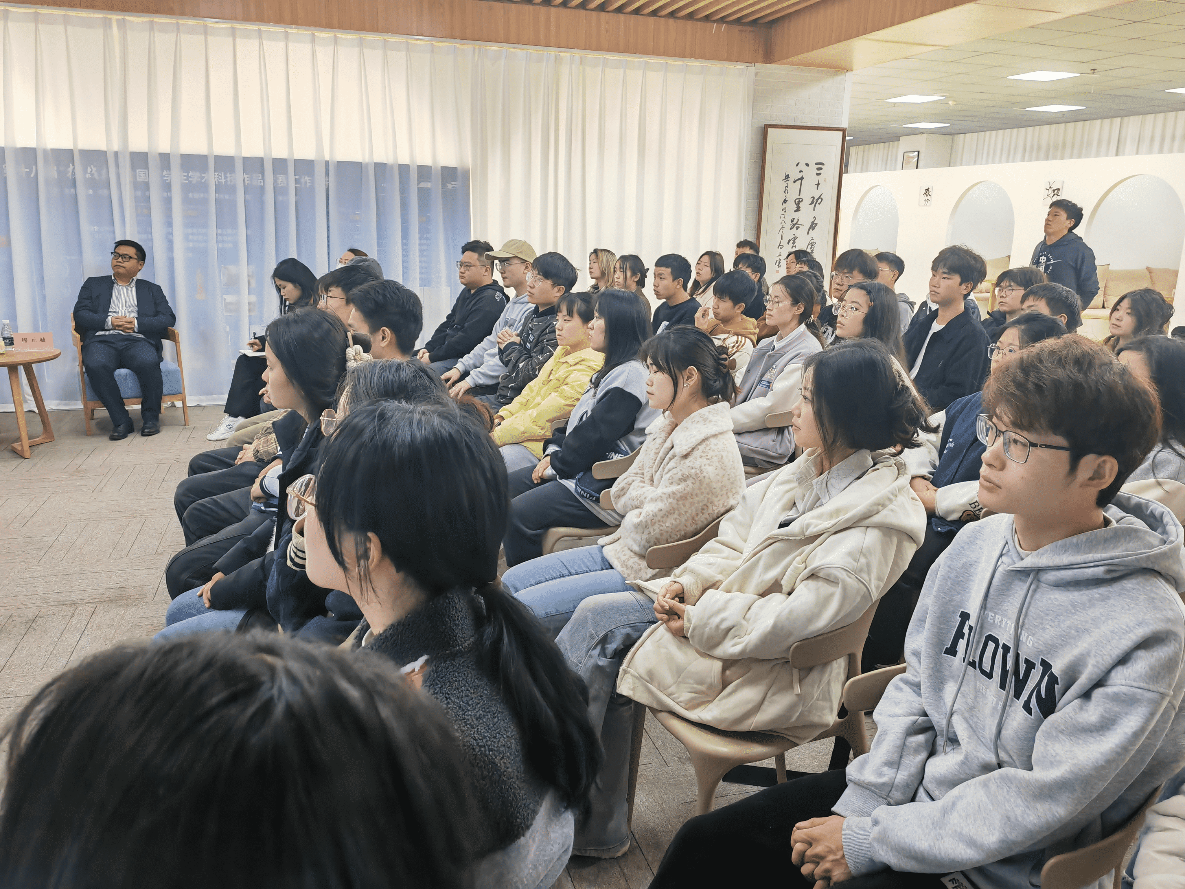 此次活动邀请到贵州知富云科技有限公司董事长穆元城、贵州大学优秀创新创业学生代表关皓元两位嘉宾为大学生分享创新创业故事、企业成长故事及工作经验等,引导大学生创新创业,进一步营造大学生创新创业的良好氛围,本次活动共有50余人参加。