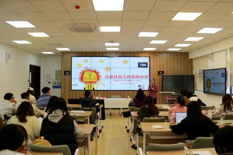 随后,围绕“儿童社会工作”主题周宇虹老师向同学们分享了她的实务经验,主要从基本情况简介、儿保政策解读、未保体系介绍、儿童项目案例四个方面展开了讲解,并且从机构总干事的角度,对“社工学生需要一个怎样的实践平台”和“服务机构需要怎样的社工学生”这两个问题进行了分析,分享易地扶贫搬迁社区儿童及其对家庭融入项目的案例让同学们看到了真实的社工状况;在学生方面,她认为机构最看重社工学生的态度以及多学多思多想的品质,同时要清醒社工的定位,要积极寻求理解、支持及问题的解决,最重要的是“做社工要先做人”;在实务方面,她强调要扎根实践的土壤,立足本土,以儿童为本,推动家庭的建设,进而推动社区及社会的建设。