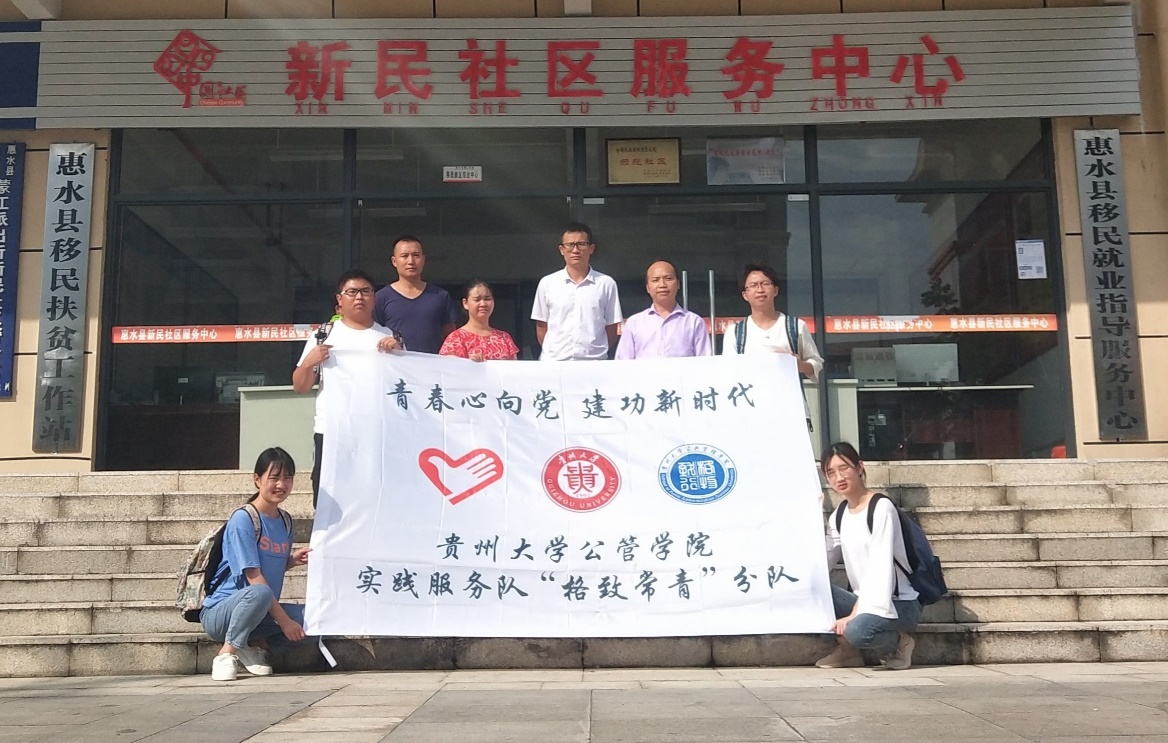 (随队记者罗超怡 报道|摄影)“青春心向党,建功新时代”,8月19日至23日,贵州大学公共管理学院实践服务队“格致常青”分队展开了为期5天的调研及志愿服务活动。本次活动由公共管理学院向生丽老师带队,分别走访了遵义白龙社区、安顺彩虹社区和惠水新民社区三个易地扶贫安置点,以“社区治理”为主题,对三地的社区治理主体、治理内容、治理机制和治理现状等展开重点调研。