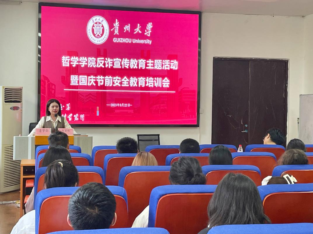 反诈宣传教育活动结束后,学院组织开展了国庆节前安全教育培训会。晏梦勋老师和周千祝老师从人身安全、交通安全、财产安全、饮食安全、宿舍安全等各方面,提醒同学们选择正规交通工具出行,妥善保管贵重物品,树立合理消费观,避免提前消费,远离网络贷等不良贷款,天气炎热,严禁下河游泳,在校期间严禁酗酒,严禁赌博。